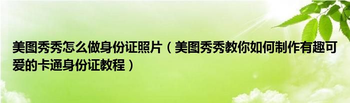 美图秀秀怎么做身份证照片(美图秀秀教你如何制作有趣可爱的卡通身份证教程)