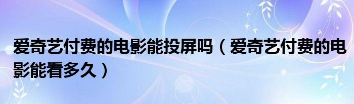 大家好,跳跳为你解答以上问题。爱奇艺付费的电影能投屏吗,爱奇艺付费的电影能看多久这个问题很多人还不知道,现在让我们一起来看看吧!