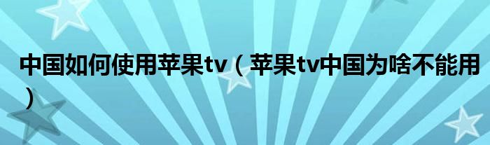 大家好,跳跳为你解答以上问题。中国如何使用苹果tv,苹果tv中国为啥不能用这个问题很多人还不知道,现在让我们一起来看看吧!