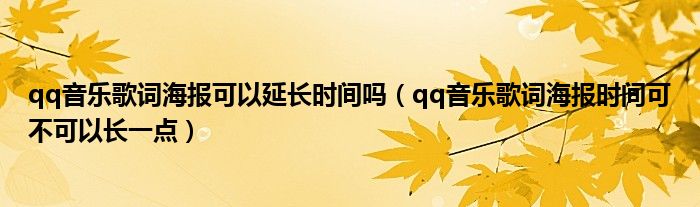 大家好,跳跳为你解答以上问题。qq音乐歌词海报可以延长时间吗,qq音乐歌词海报时间可不可以长一点这个问题很多人还不知道,现在让我们一起来看看吧!