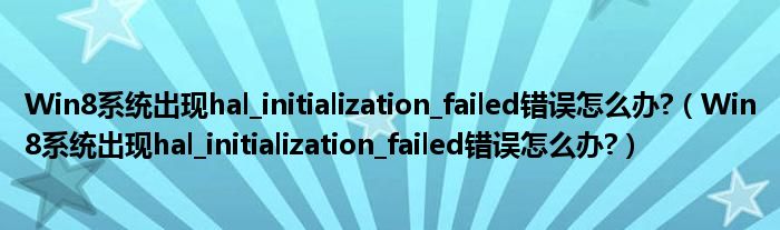 大家好,小太来为大家解答以上问题。Win8系统出现hal_initialization_failed错误怎么办?,Win8系统出现hal_initialization_failed错误怎么办?很多人还不知道,现在让我们一起来看看吧!