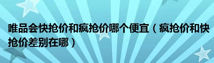 大家好,跳跳为你解答以上问题。唯品会快抢价和疯抢价哪个便宜,疯抢价和快抢价差别在哪这个问题很多人还不知道,现在让我们一起来看看吧!