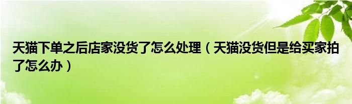大家好,跳跳为你解答以上问题。天猫下单之后店家没货了怎么处理,天猫没货但是给买家拍了怎么办这个问题很多人还不知道,现在让我们一起来看看吧!