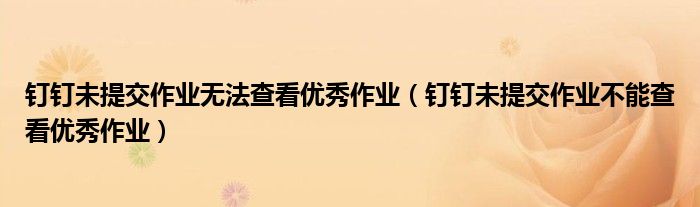 解答:1、钉钉未提交作业不能查看优秀作业是由钉钉系统设定的。没有在线提交作业的学生无法查看该作业的优秀作业功能,因此如果用户没有提交作业,则无法查看优秀作业。这是为了避免作业抄袭。