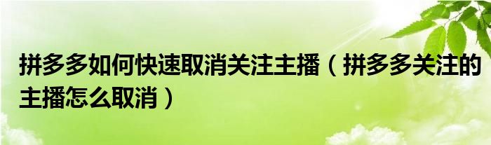 大家好,跳跳为你解答以上问题。拼多多如何快速取消关注主播,拼多多关注的主播怎么取消这个问题很多人还不知道,现在让我们一起来看看吧!