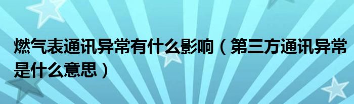 大家好,跳跳为你解答以上问题。燃气表通讯异常有什么影响,第三方通讯异常是什么意思这个问题很多人还不知道,现在让我们一起来看看吧!