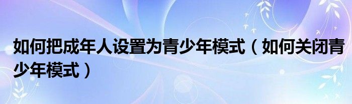 大家好,跳跳为你解答以上问题。如何把成年人设置为青少年模式,如何关闭青少年模式这个问题很多人还不知道,现在让我们一起来看看吧!