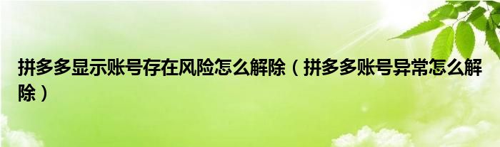 大家好,跳跳为你解答以上问题。拼多多显示账号存在风险怎么解除,拼多多账号异常怎么解除这个问题很多人还不知道,现在让我们一起来看看吧!