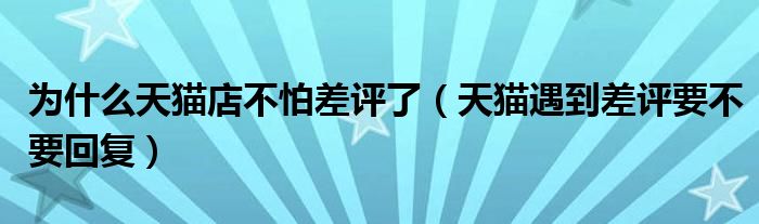 大家好,跳跳为你解答以上问题。为什么天猫店不怕差评了,天猫遇到差评要不要回复这个问题很多人还不知道,现在让我们一起来看看吧!