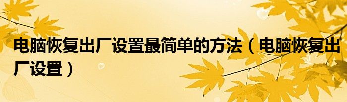 大家好,慧慧来为大家解答以上问题,电脑恢复出厂设置最简单的方法,电脑恢复出厂设置很多人还不知道,现在让我们一起来看看吧!