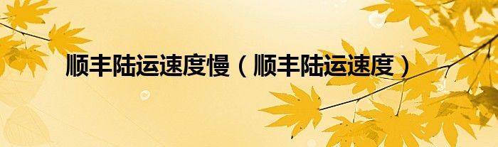 顺丰陆运速度慢(顺丰陆运速度)