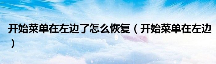 大家好,慧慧来为大家解答以上问题,开始菜单在左边了怎么恢复,开始菜单在左边很多人还不知道,现在让我们一起来看看吧!