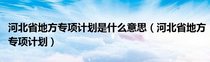 河北省地方专项计划是什么意思(河北省地方专项计划)