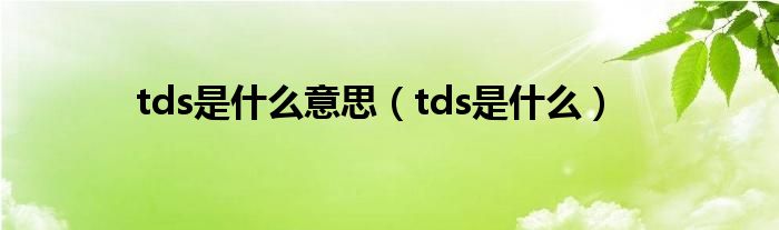 关于tds是什么意思,tds是什么这个很多人还不知道,今天菲菲来为大家解答以上的问题,现在让我们一起来看看吧!