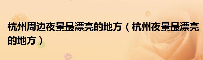 杭州周边夜景最漂亮的地方(杭州夜景最漂亮的地方)