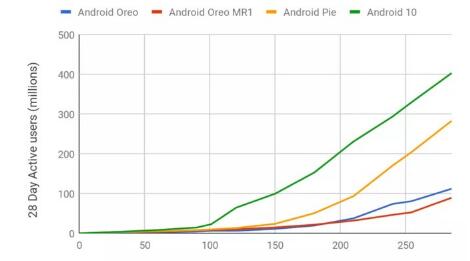 这意味着Android 10能够以高于所有以前版本的速度到达设备。谷歌表示,在2019年9月启动5个月后,已经在1亿台设备上安装了Android 10。相比之下,Android 10比上一版本的Android 9 Pie快了28%,达到了1亿。