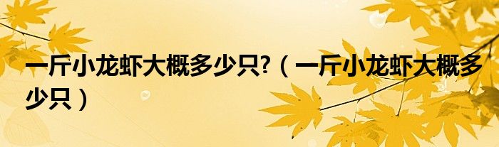 大家好,小晋来为大家解答以下问题,关于一斤小龙虾大概多少只?,一斤小龙虾大概多少只很多人还不知道,今天让我们一起来看看吧!