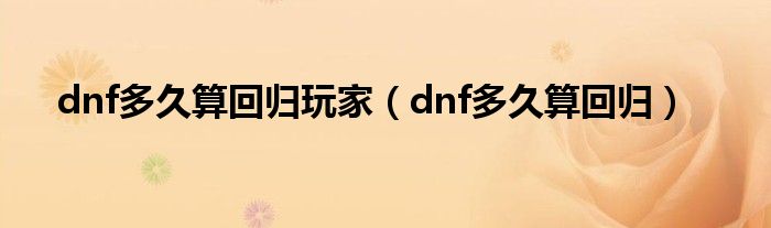 dnf多久算回归玩家(dnf多久算回归)
