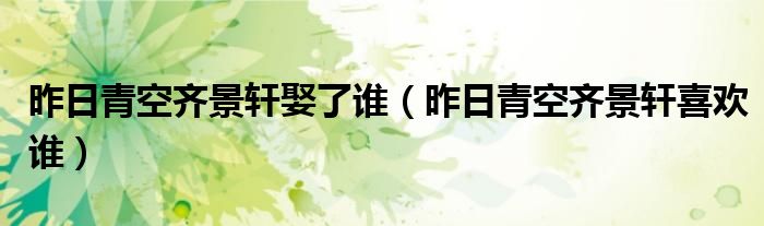 大家好,小晋来为大家解答以下问题,关于昨日青空齐景轩娶了谁,昨日青空齐景轩喜欢谁很多人还不知道,今天让我们一起来看看吧!