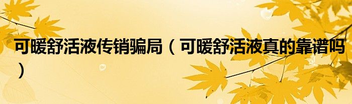 大家好,小晋来为大家解答以下问题,关于可暖舒活液传销骗局,可暖舒活液真的靠谱吗很多人还不知道,今天让我们一起来看看吧!