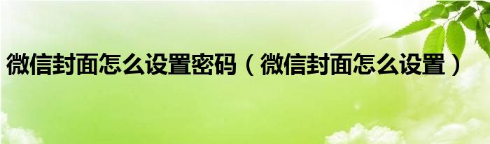 大家好,小晋来为大家解答以下问题,关于微信封面怎么设置密码,微信封面怎么设置很多人还不知道,今天让我们一起来看看吧!
