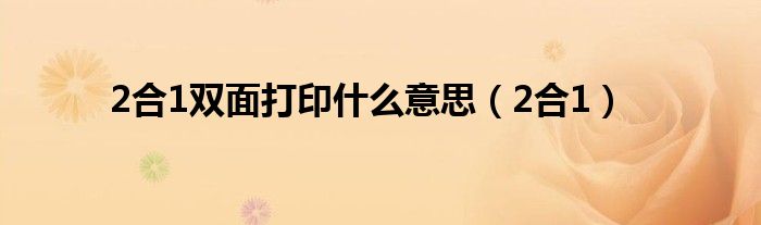 大家好,来宝来为大家解答以下问题,2合1双面打印什么意思,2合1很多人还不知道,今天让我们一起来看看吧!
