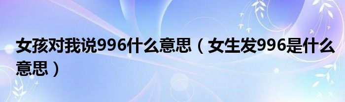 大家好,小晋来为大家解答以下问题,关于女孩对我说996什么意思,女生发996是什么意思很多人还不知道,今天让我们一起来看看吧!