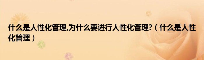关于什么是人性化管理,为什么要进行人性化管理?,什么是人性化管理这个很多人还不知道,今天菲菲来为大家解答以上的问题,现在让我们一起来看看吧!