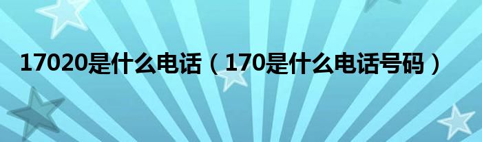 关于17020是什么电话,170是什么电话号码这个很多人还不知道,今天菲菲来为大家解答以上的问题,现在让我们一起来看看吧!