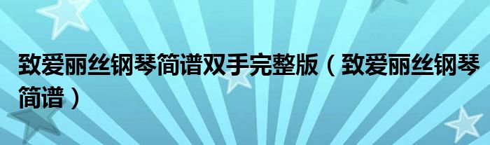 关于致爱丽丝钢琴简谱双手完整版,致爱丽丝钢琴简谱这个很多人还不知道,今天菲菲来为大家解答以上的问题,现在让我们一起来看看吧!