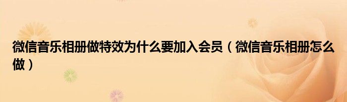 大家好,小晋来为大家解答以下问题,关于微信音乐相册做特效为什么要加入会员,微信音乐相册怎么做很多人还不知道,今天让我们一起来看看吧!