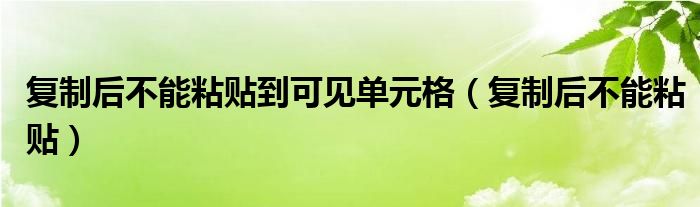 大家好,来宝来为大家解答以下问题,复制后不能粘贴到可见单元格,复制后不能粘贴很多人还不知道,今天让我们一起来看看吧!