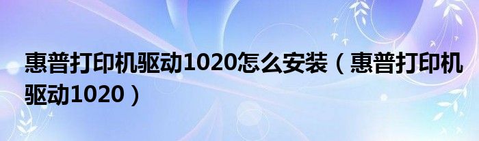 1、惠普1020打印机驱动怎么安装?下文小编就教大家安装惠普1020打印机驱动的方法,相信还有很多朋友对于惠普1020打印机驱动怎么安装还不太了解,下面和小编一起去看下吧。