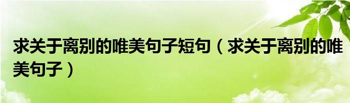 关于求关于离别的唯美句子短句,求关于离别的唯美句子这个很多人还不知道,今天菲菲来为大家解答以上的问题,现在让我们一起来看看吧!