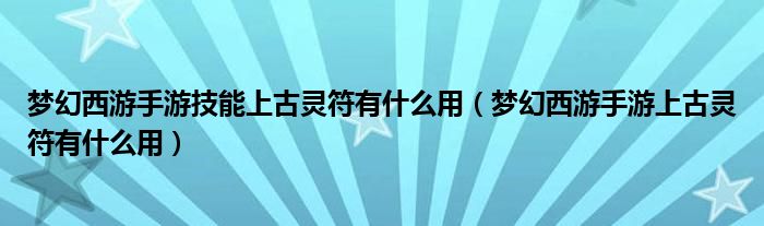 关于梦幻西游手游技能上古灵符有什么用,梦幻西游手游上古灵符有什么用这个很多人还不知道,今天菲菲来为大家解答以上的问题,现在让我们一起来看看吧!