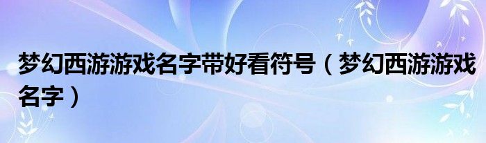 大家好,来宝来为大家解答以下问题,梦幻西游游戏名字带好看符号,梦幻西游游戏名字很多人还不知道,今天让我们一起来看看吧!