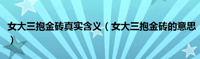 关于女大三抱金砖真实含义,女大三抱金砖的意思这个很多人还不知道,今天菲菲来为大家解答以上的问题,现在让我们一起来看看吧!