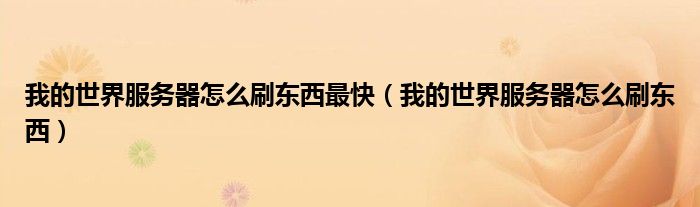 关于我的世界服务器怎么刷东西最快,我的世界服务器怎么刷东西这个很多人还不知道,今天菲菲来为大家解答以上的问题,现在让我们一起来看看吧!