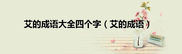 大家好,小晋来为大家解答以下问题,关于艾的成语大全四个字,艾的成语很多人还不知道,今天让我们一起来看看吧!