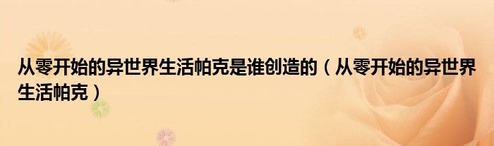 关于从零开始的异世界生活帕克是谁创造的,从零开始的异世界生活帕克这个很多人还不知道,今天菲菲来为大家解答以上的问题,现在让我们一起来看看吧!