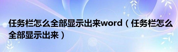 关于任务栏怎么全部显示出来word,任务栏怎么全部显示出来这个很多人还不知道,今天菲菲来为大家解答以上的问题,现在让我们一起来看看吧!