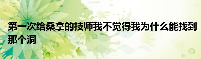 关于第一次给桑拿的技师我不觉得我为什么能找到那个洞这个很多人还不知道,今天菲菲来为大家解答以上的问题,现在让我们一起来看看吧!