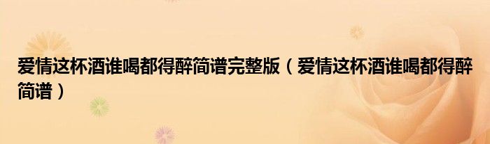 关于爱情这杯酒谁喝都得醉简谱完整版,爱情这杯酒谁喝都得醉简谱这个很多人还不知道,今天菲菲来为大家解答以上的问题,现在让我们一起来看看吧!