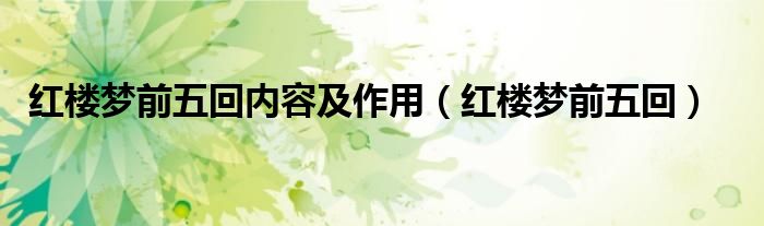 关于红楼梦前五回内容及作用,红楼梦前五回这个很多人还不知道,今天菲菲来为大家解答以上的问题,现在让我们一起来看看吧!