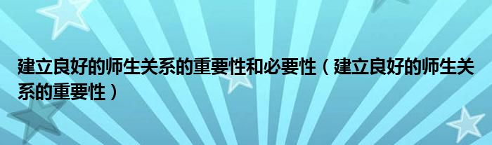 关于建立良好的师生关系的重要性和必要性,建立良好的师生关系的重要性这个很多人还不知道,今天菲菲来为大家解答以上的问题,现在让我们一起来看看吧!