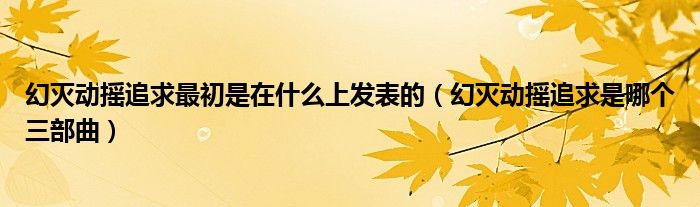关于幻灭动摇追求最初是在什么上发表的,幻灭动摇追求是哪个三部曲这个很多人还不知道,今天菲菲来为大家解答以上的问题,现在让我们一起来看看吧!