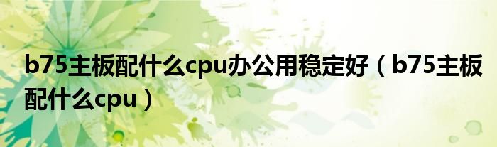关于b75主板配什么cpu办公用稳定好,b75主板配什么cpu这个很多人还不知道,今天菲菲来为大家解答以上的问题,现在让我们一起来看看吧!