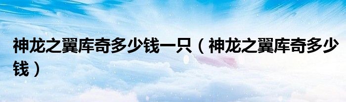 大家好,小晋来为大家解答以下问题,关于神龙之翼库奇多少钱一只,神龙之翼库奇多少钱很多人还不知道,今天让我们一起来看看吧!