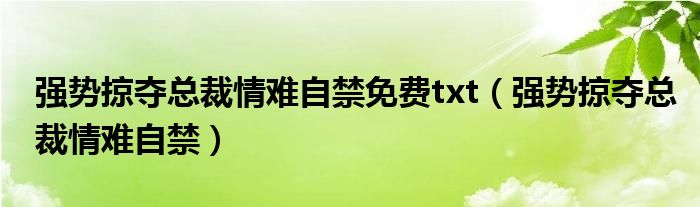 关于强势掠夺总裁情难自禁免费txt,强势掠夺总裁情难自禁这个很多人还不知道,今天菲菲来为大家解答以上的问题,现在让我们一起来看看吧!