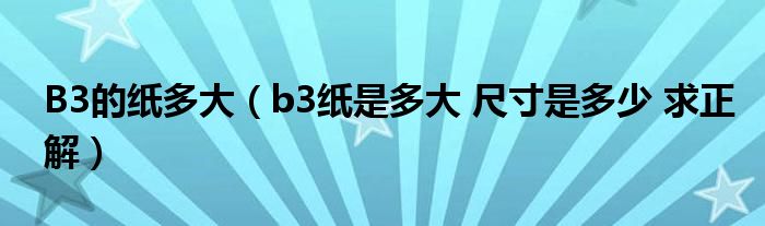 关于B3的纸多大,b3纸是多大 尺寸是多少 求正解这个很多人还不知道,今天菲菲来为大家解答以上的问题,现在让我们一起来看看吧!